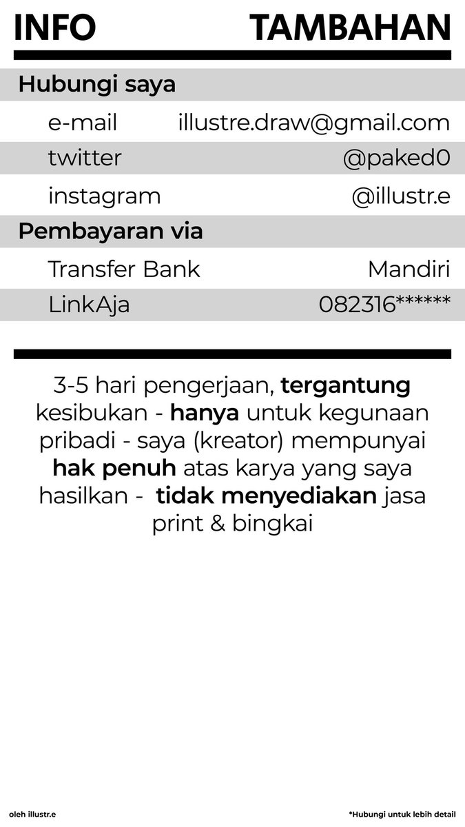 paked0/illustr.e open commission!!🥳🥳 Detailnya bisa liat di gambar, kalo bingung boleh nanya dong✨✨* nb: RT & likes sangat membantu nuhun🥰🥰🥰🥰🥰🥰🥰 #artidn #ArtistOfindonesia #commissionsopen #Commission