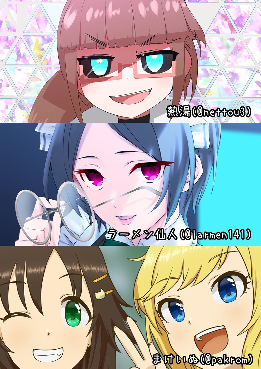 30 53 3/21シンステ10の新刊①です! 熱湯(@nettou3) ラーメン仙人(@larmen141) まけいぬ(@pakrom) の三人による合同イラスト本の第四弾! これで春夏秋冬表紙が揃ったぞ! 22/03/13 20:45
