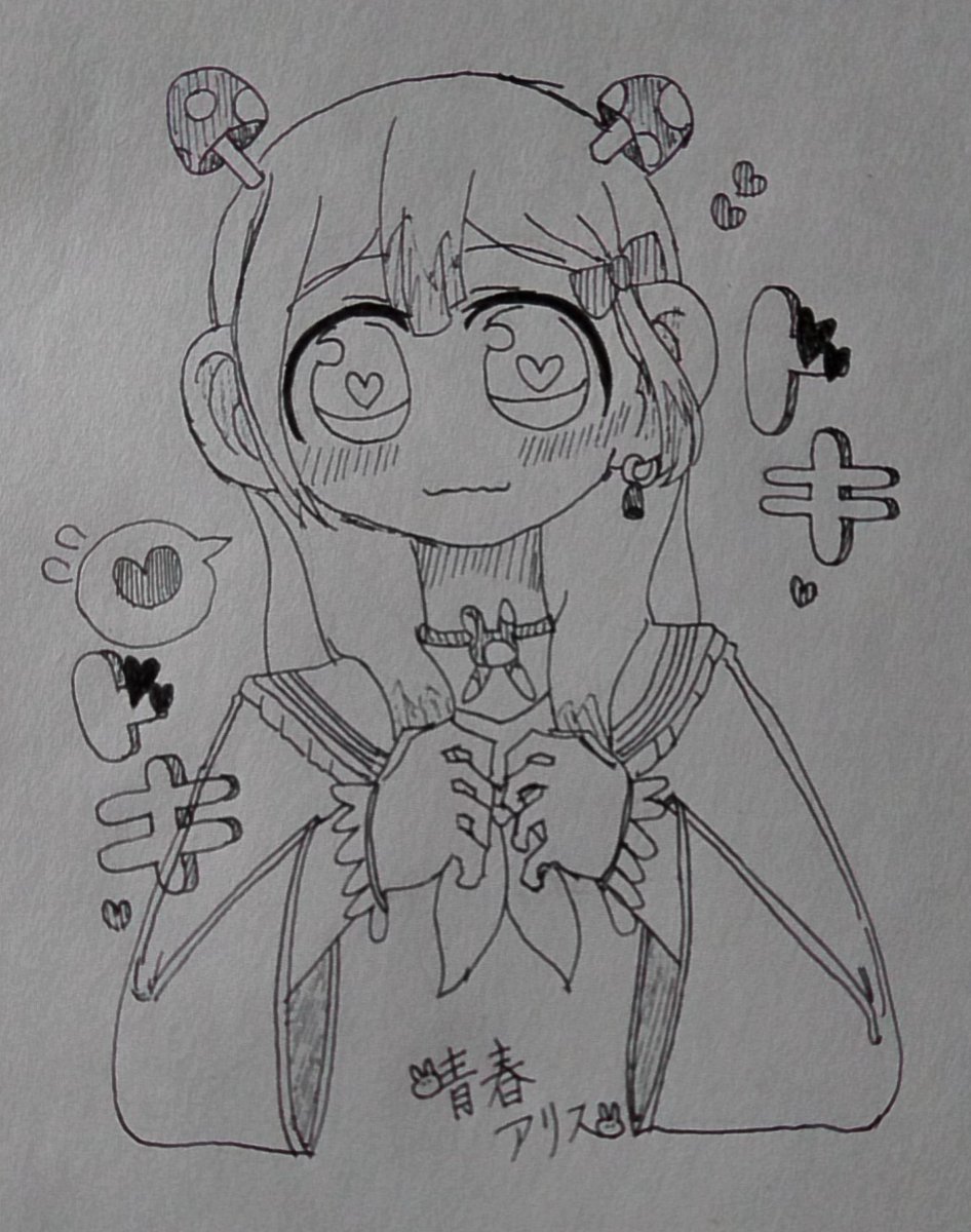 女の子だって描けるという証明をしたかった(したかった)。青春アリスちゃん🂱 #コンパスお絵描き
