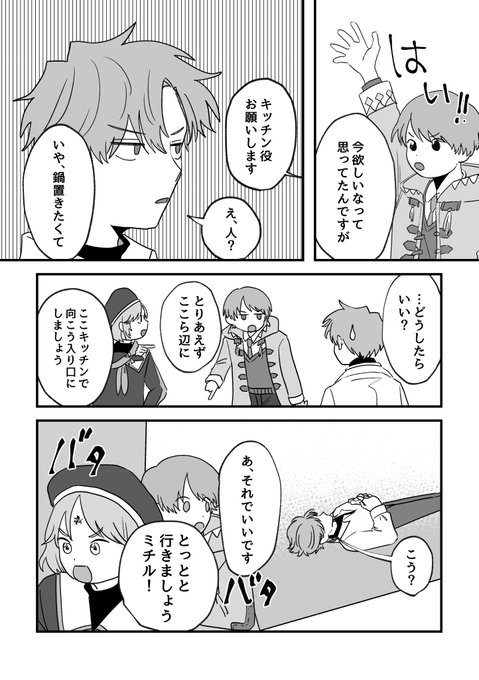 【8/20夏インテ(別ジャンル出席)・8/27賢マナ】 まほやく本サンプル 「kitchen」A5/24p リケとミチルのおままごとに巻き込まれて変な配役をやらされる大人(フィガロ、オズ、ネロ)の話です。 発行日は8/27にしています。 部数アンケートにご協力ください 【onl.tw/ahZx1RJ】 (1/2)