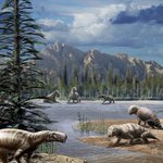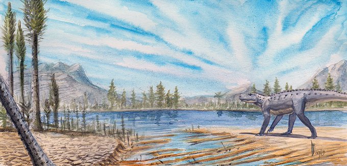 Tiny watercolor painting of Ticinosuchus in early Triassic landscape. #paleoart #paleoartist #watercolorpainting #watercolor #triassic #landscapepainting #traditionalart