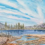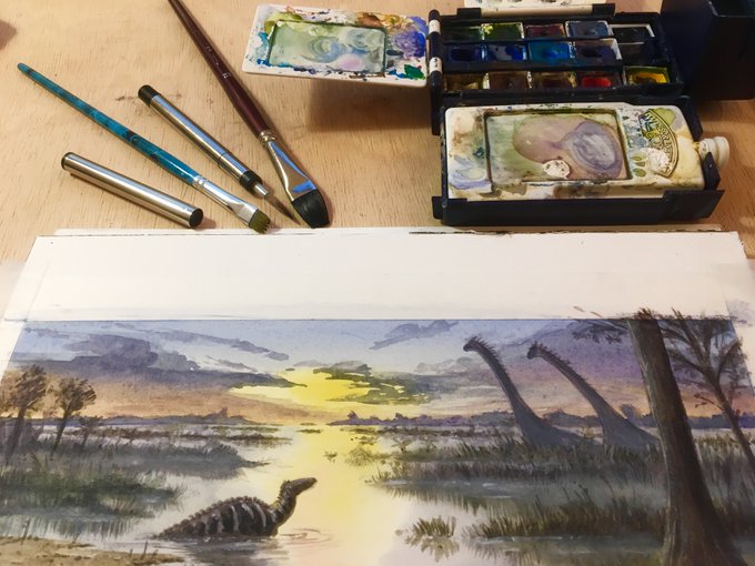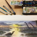 Commission of an evocation of the lower cretaceous landscape of Ghosta, Lebanon. Watercolor and white gouache. #paleoart #traditionalart #landscapepainting #dinosaur #dinosaurtracks #paleoartist #landscapeartist #cretaceous #ornithpods #sauropods #commision