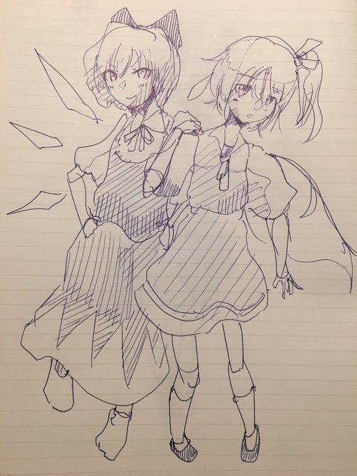 12 33 大妖精、チルノ、紅美鈴 慣れない構図は難しいけど新鮮で楽しいです #絵描きさんと繋がりたい 21/04/18 02:44