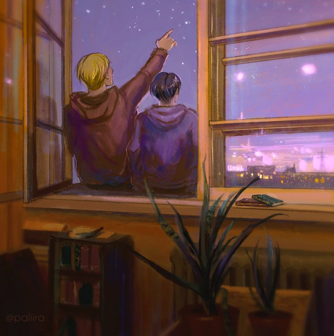 Different style this time ^^ Eruri week - day 2 - `quarantine` stargazing ✨ ___ ref from pinterest #eruriweek2020 #eruriweek #eruri #erurifanart #eruriart #leviackerman #erwinsmith #aotfanart #snkfanart #エルリ