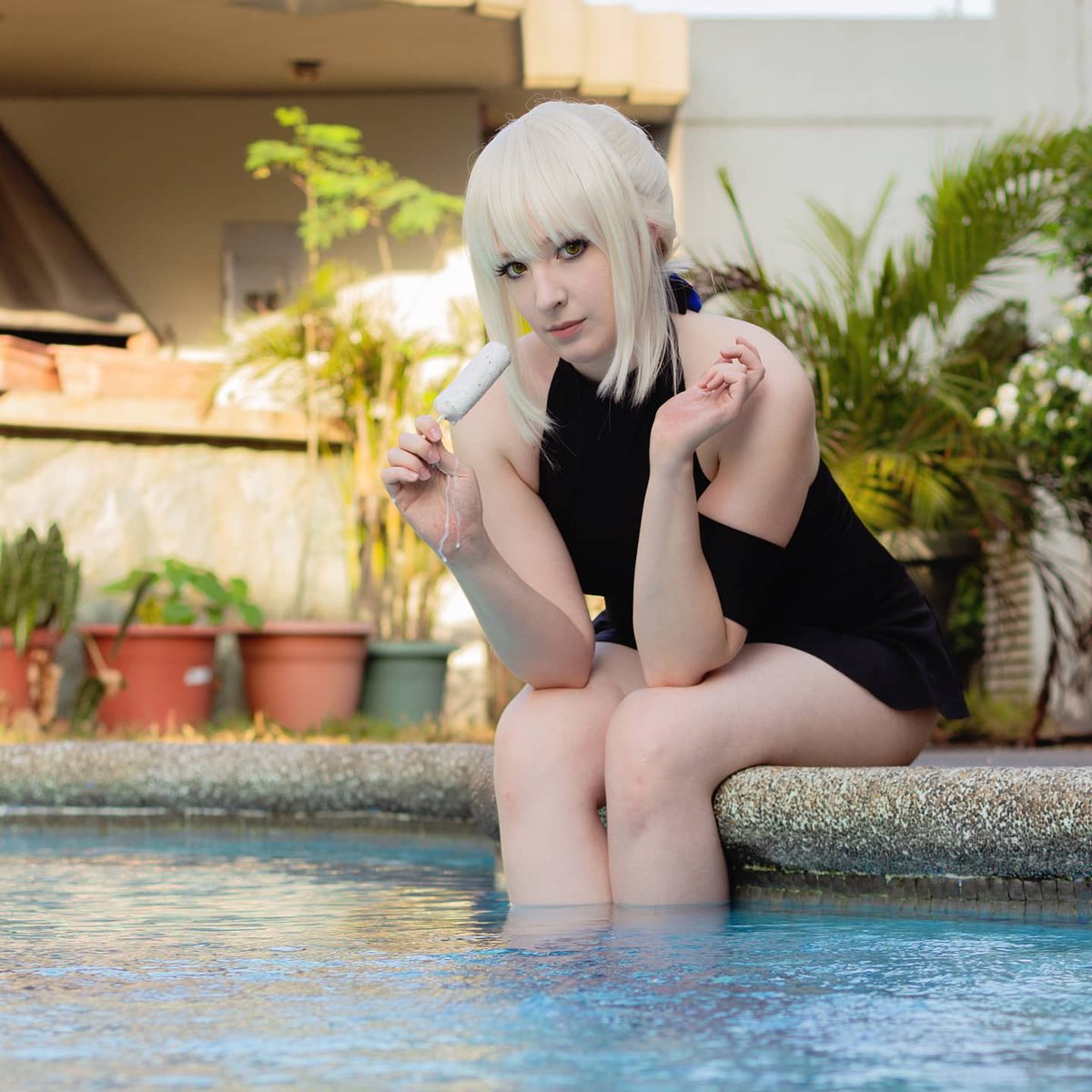 Stockings or thigh high socks? 🤔 #fgo #saber #saberalter #cosplay #maid #FateGrandOrderCosplay #FateGrandOrder
