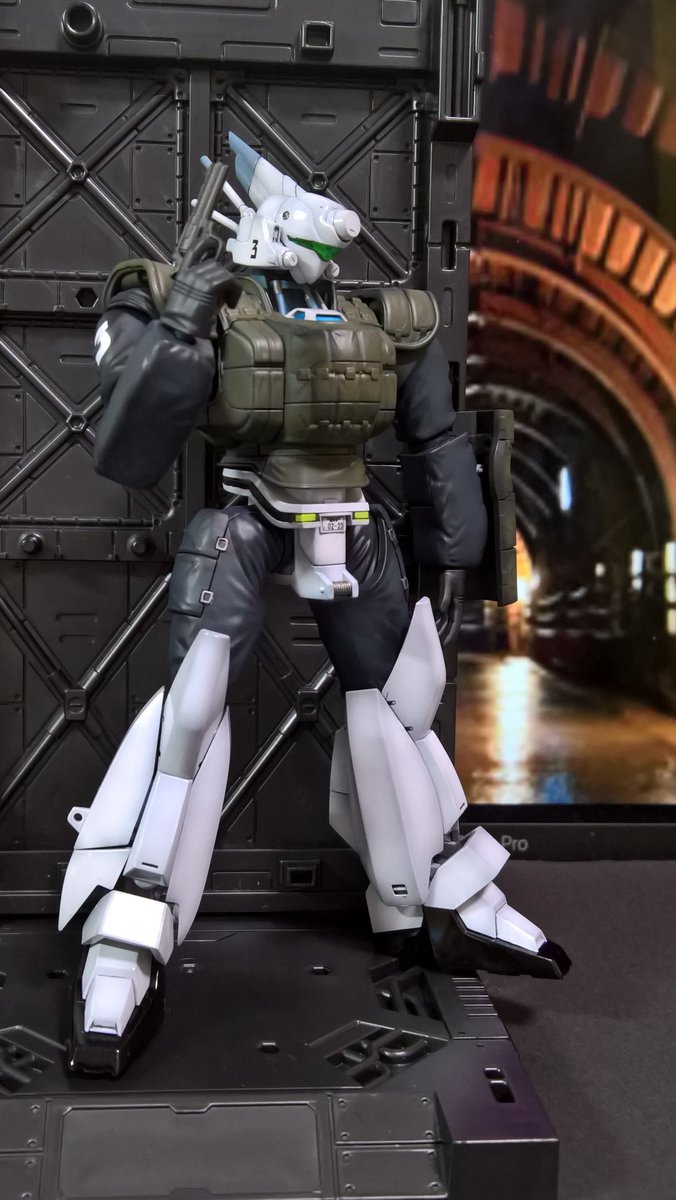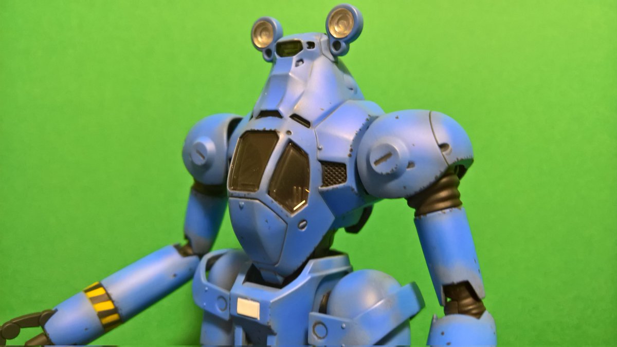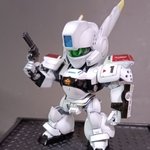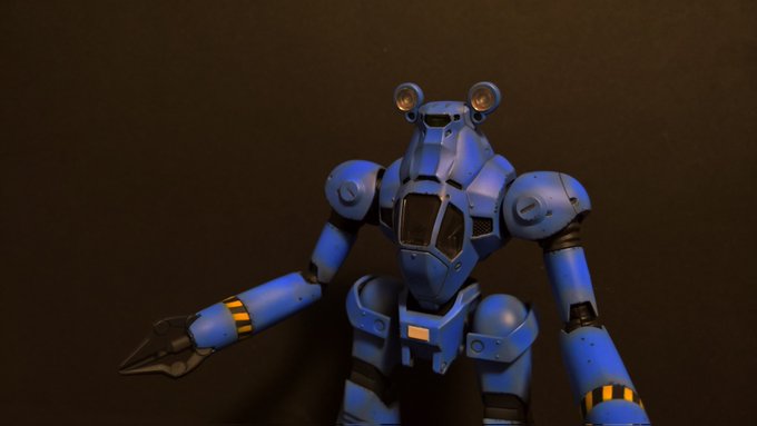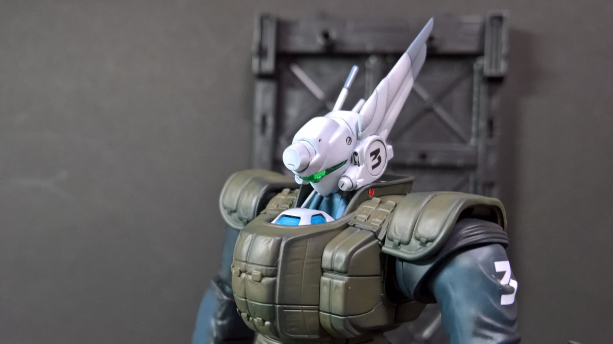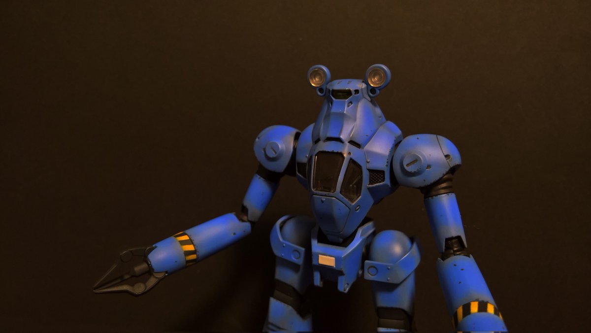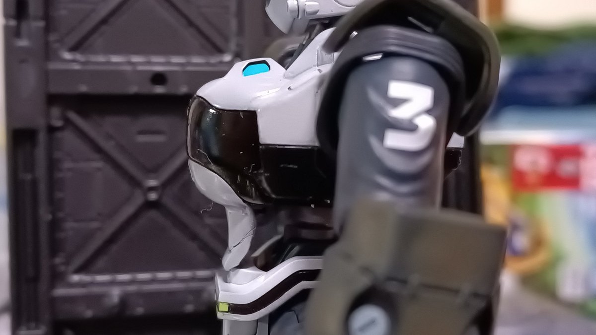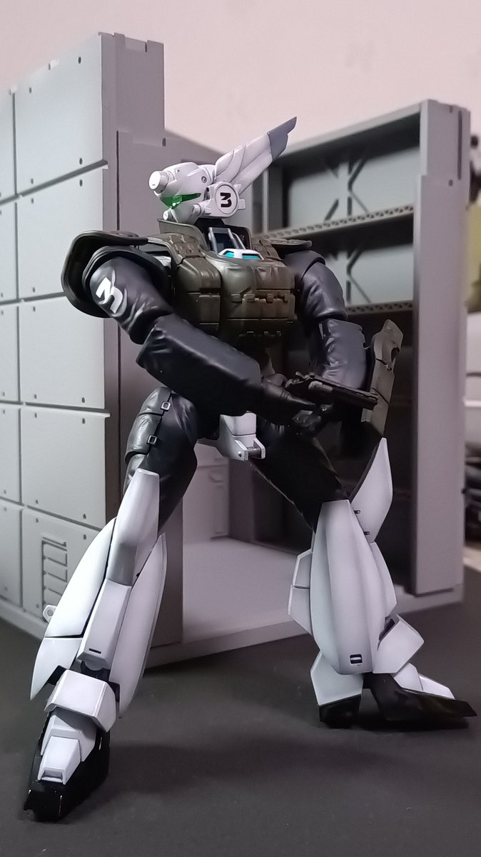 前ページの続き、青を発色させようと白立ち上げ。汚しは控え気味。塗装剥げの表現くらいにしておきました。腕のトラマーキングはシールをマスキングにて塗りました。3号機との対比🤔イングラムと比較 後までお付き合いいただきありがとうございました。 #パトレイバー模型部 # MODEROID