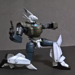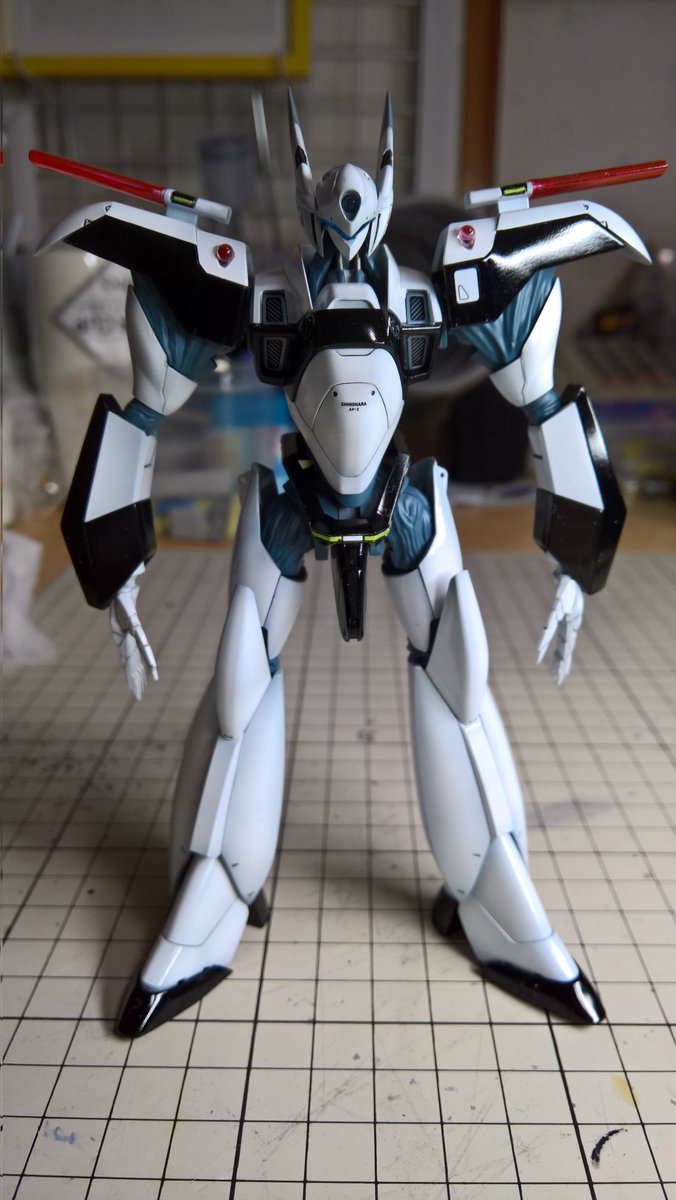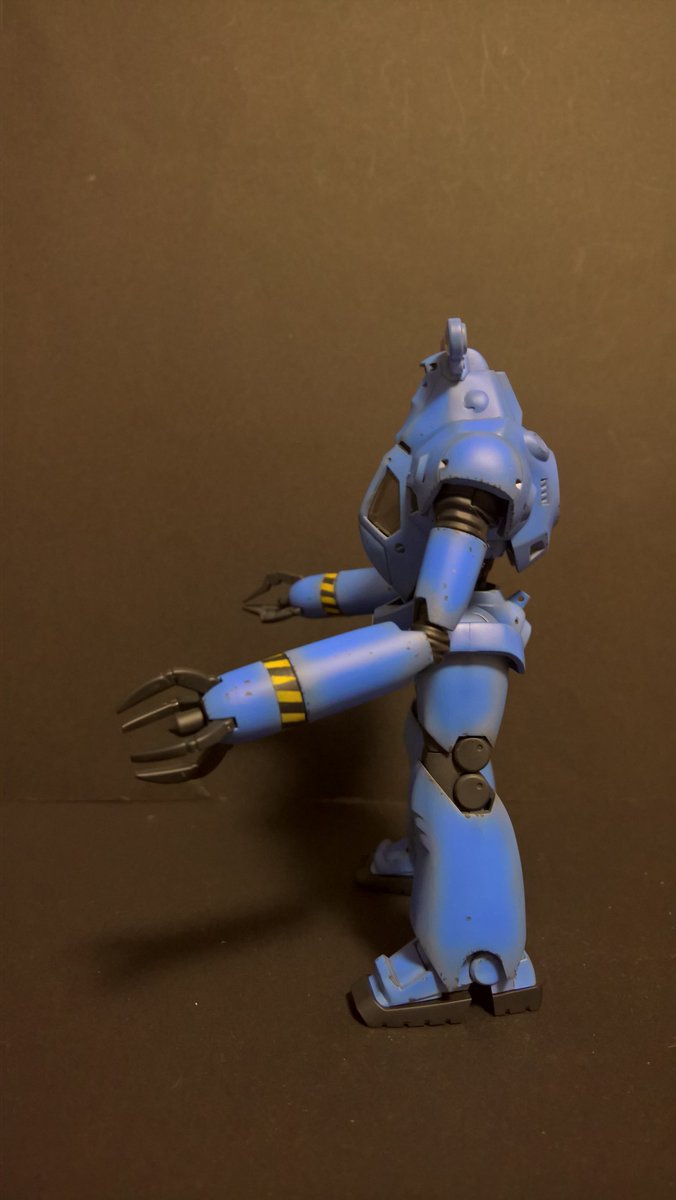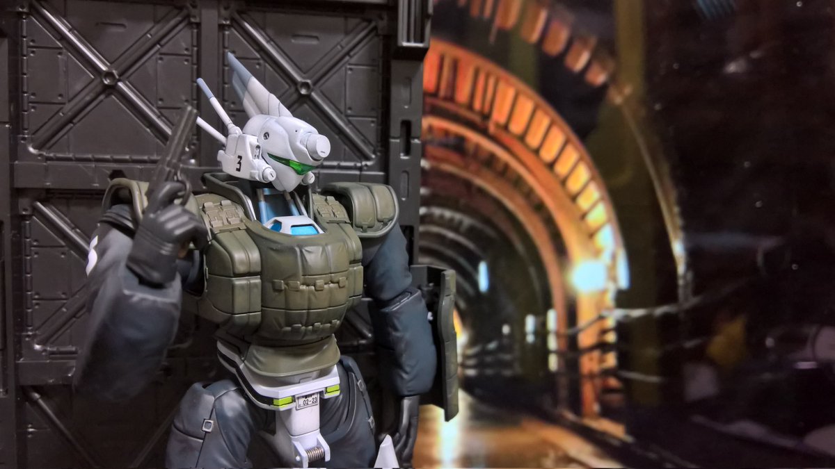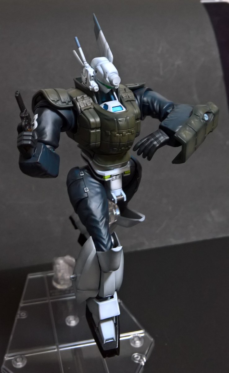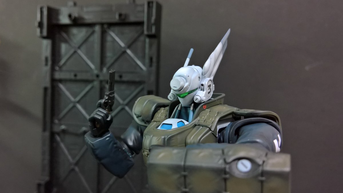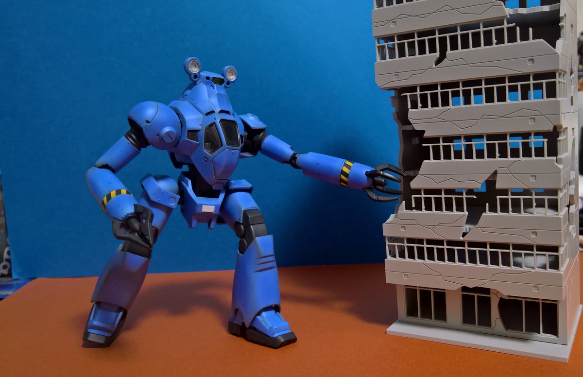 前ページの続き、青を発色させようと白立ち上げ。汚しは控え気味。塗装剥げの表現くらいにしておきました。腕のトラマーキングはシールをマスキングにて塗りました。3号機との対比🤔イングラムと比較 後までお付き合いいただきありがとうございました。 #パトレイバー模型部 # MODEROID