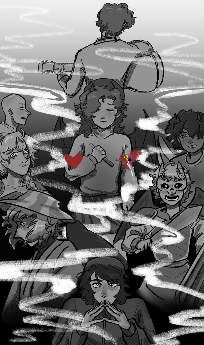 So we made a sea in the desert and saw the most beautiful in the most incredible. The ribbons weaved the sky together, made it hard to tell the time of day. No one cared, everyone has become a part of it. #qsmp #qsmpfanart #philzafanart #tallulahfanart #ChayanneFanart