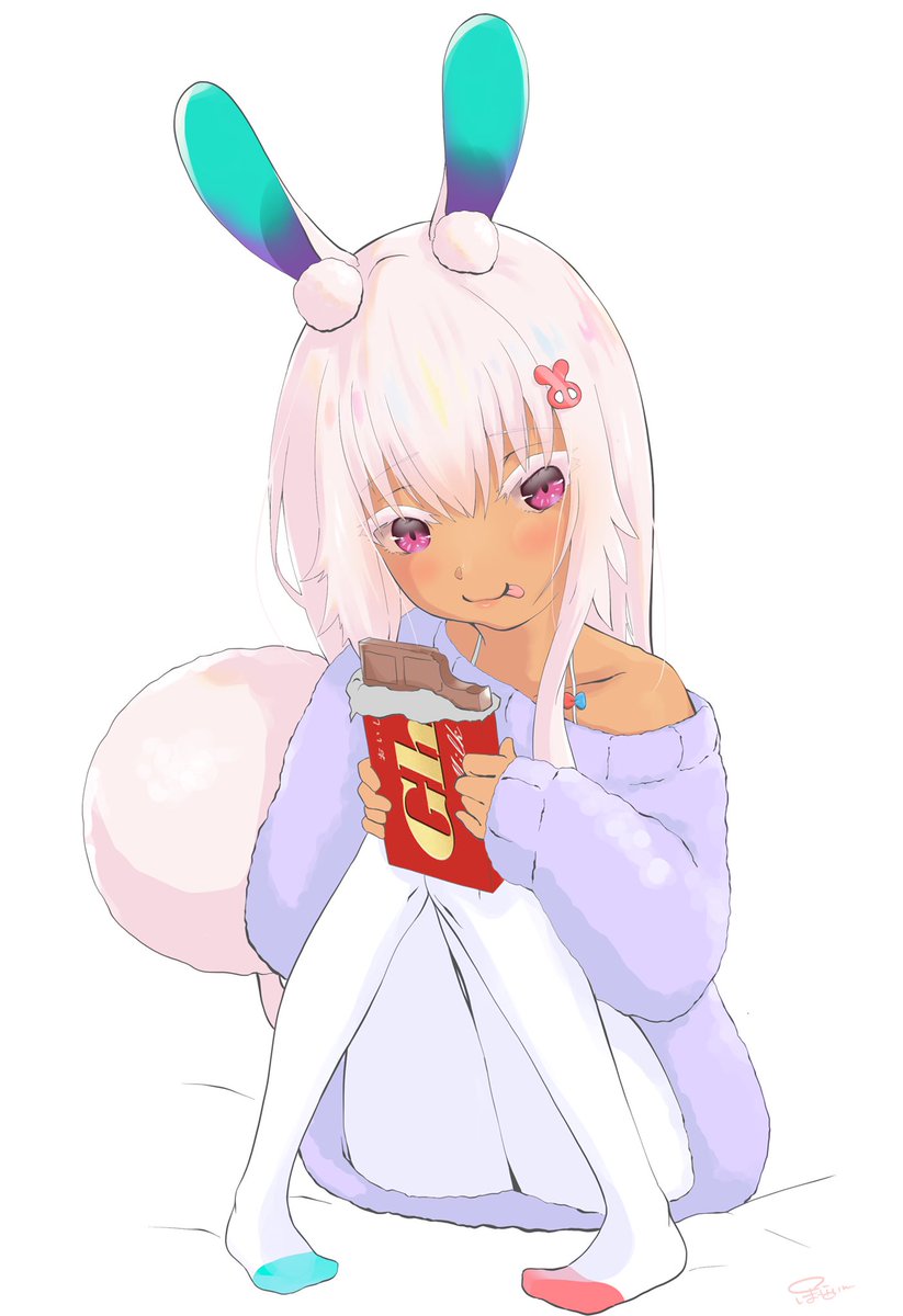 7 34 リクエスト ふわふわニットでチョコ🍫を食べてる眠居ふわり @zzz_fuwari #ふわり塾 #ふわりの絵 21/01/16 12:50