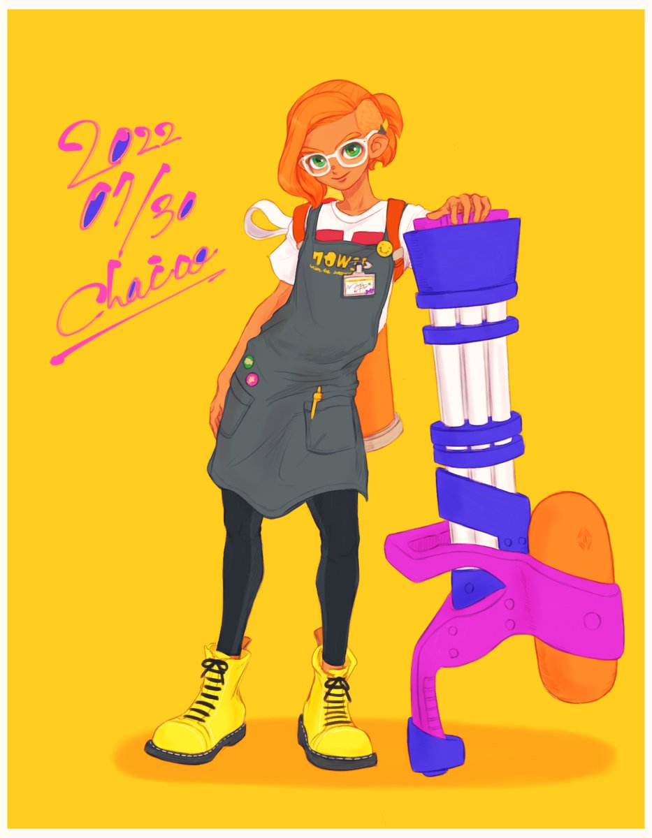 10 132 午前中頑張ったので午後は自由にお絵描き。前から描いてみたかったスプラトゥーン2の自分のイカ🦑上手くないけど好きな武器はスパイガジェットソラーレ、スパッターリークリア、スプラスピナーが好きです。インクはオレンジの時が一番テンション上がる 22/07/30 17:30