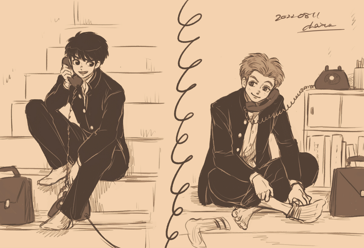 177 1207 マシュマロ絵。スパイファミリーのダミアンとアーニャ😡😏画像検索したらセーラールックのグッズがあってめちゃくちゃ可愛くて、特にシチュエーションのご指定はなかったのでこちらの衣装で描かせていただました。この二人のやりとり大好きです😊(あえて目線合わせずに描きたくなる) 22/07/26 17:27