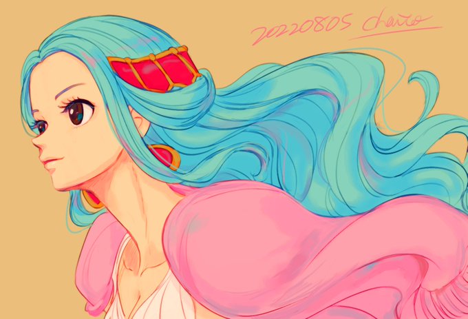マシュマロ絵。ワンピースのビビちゃん👸砂漠の国のお姫様繋がりでジャスミンと連続して描きたかったのです😊色素薄めのビジュアルに対して深い色の力強い瞳が印象的で、本当にかっこいいなぁと思います