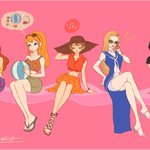 マシュマロ絵。擬人化でミニー、デイジー、クラリス、ガジェット、ロクサーヌ🥰この5人勢ぞろい案にサマーって感じのクラリスとガジェットという案をミックスして、ビーチスタイルのガールズを描かせていただきました🏖前に描いて楽しかったのでお召し物はボーイフレンドイメージにしてみてます