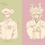 マシュマロ絵。擬人化でどうぶつの森のジャスティンとレックス🎣🐞この二人は前回からいくつか頂いてまして、今回ようやく描かせていただきました。パーツの落とし込み方に結構悩みましたが、それなりに脳内イメージには近くなったかなと思います✍️