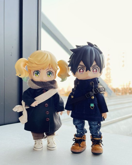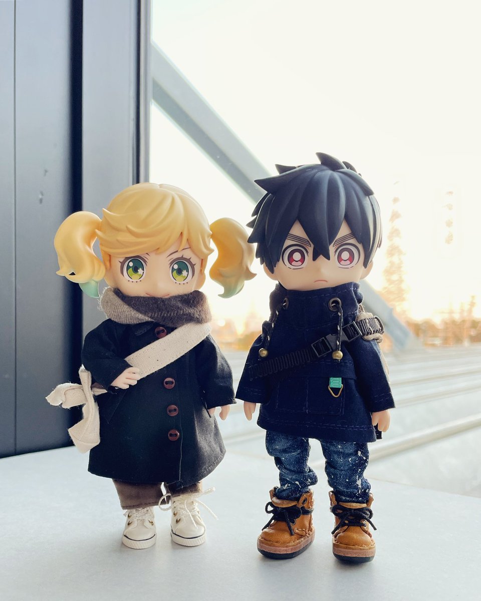 2人ともキリッとしてる✨ ◆夏羽 アウター→@yohocap2 デニム→@spice116s ワークブーツ→@ronron3aya ◆さらさ アウター、バッグ→(minne) パンツ→(BOOTH) スニーカー→@_ponmochi_ スヌード→@LOCCO_hats (敬称略) 素敵な作品をありがとうございます🙇♂️ #オビツろいど #ねんどろいどどーる