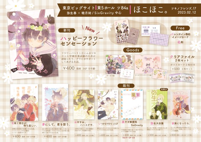 2/12ツキノフレンズ。17のお品書きです🌼 新刊出ます!グラビ中心のハッピー本です! 当日はよろしくお願いします✨ ────────── 2023.02.12 東京ビックサイト スペース🌼東5ホール ツ84a サークル名🌼ほこほこ。 ────────── 詳細はピクシブで▶︎pixiv.net/artworks/10523…