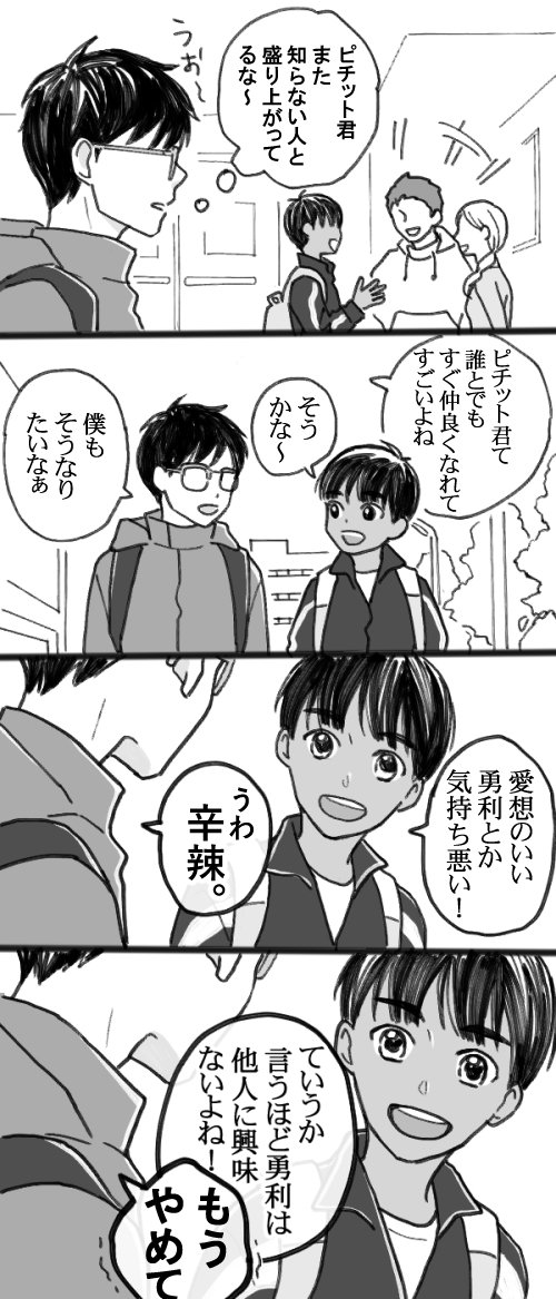 618 3122 勇利は英語でも「Phichit-kun」て呼んでるといいなって、妄想~!! 18/08/09 23:30