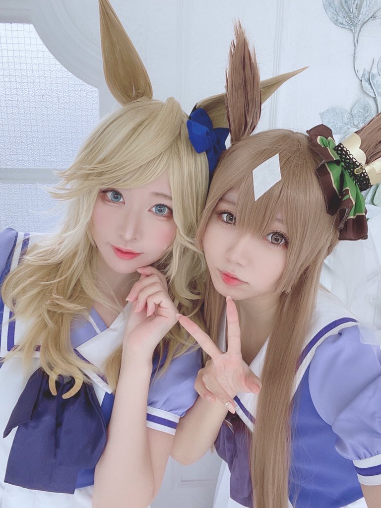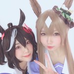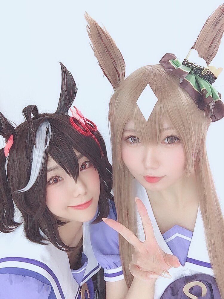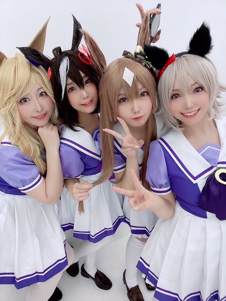 昨日のウマ娘わちゃわちゃ🐴❣️ ゆんとキタサト出来たのも嬉しかったしこのメンバーでコス合わせしたの初なの笑ってた👼
