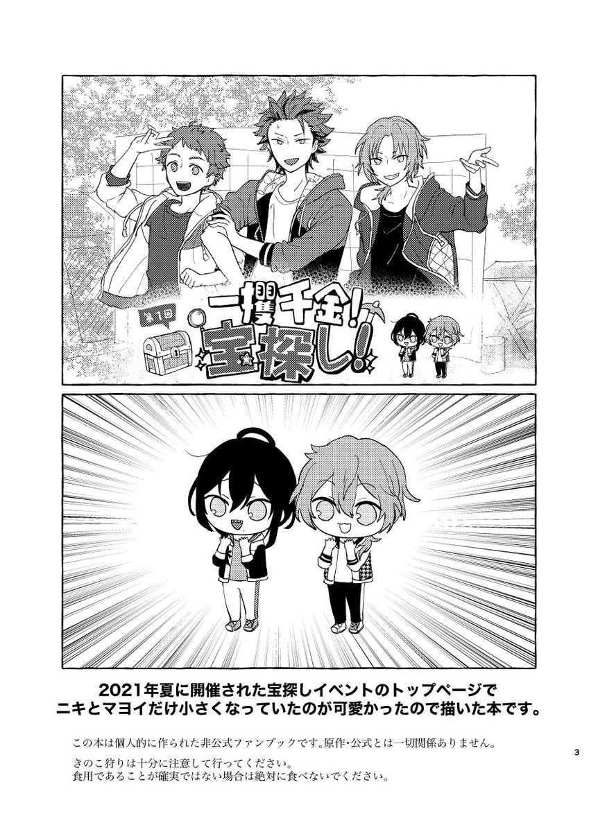 6/25 JBF2023 巽マヨ新刊サンプル🍄(1/5) 小さくなったマヨイさんと、巽さんの話です🍄 A5/52P/600円(会場頒布価格)