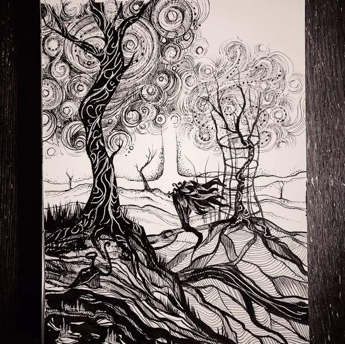 Очень сложно показать красоту Тургора в чб, но что-то у меня получилось. Среди деревьев можно рассмотреть что-то похожее на клеща, а каждый момент игры сопровождается ударом сердца. #inktober2021tick #inktober2021 #turgor #icepicklodge