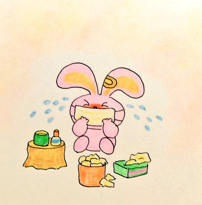 🐰😭わ~ん💦💦花粉症になったぁ~~😣 目が~😱 鼻が~😱 🌷🌱🍀🌼春は好いけど どうにかして~😣🐰 #手書きイラスト #うさぎ #花粉症 #とうとう花粉症デビューしてしまいました😭 #こんなに辛いとは何も出来ない日々です😞😷😷