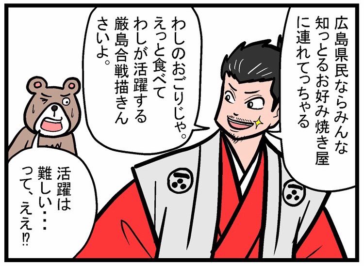 非公式告知。 毛利元就に関わる戦国大名たちが安芸高田市に注目しているようです。 #毛利元就 #安芸高田市 #4コマ漫画