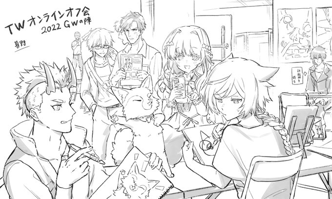 配信お聞きいただいた皆様ありがとうございました! 懐かしの浅草GWオフっぽい雰囲気で描かせていただきました。 人数追加できそうだったらまた後日。 #TWオンラインオフ会2022