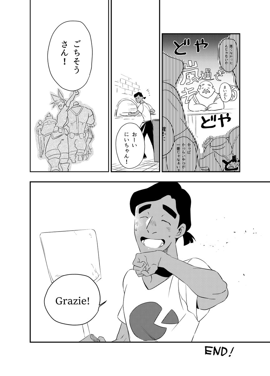 まだDVD発売前に描いていたプロメアの名脇役ことピザ屋の青年とおじさんの物語です。 3周年を経てはじめてプロメアを視聴された方も久しぶりにご覧になった方もまだ視聴をされていない方も。 物語の途中で退場してしまう彼らにちょっとでも思いはせていただけたら当時の私が報われます…。