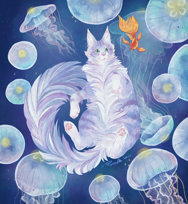 接受 medibang.com/picture/7a2208… #ARTstreet #MediBang #oc #動物 #水 #2022年8月主題:原創角色 #貓 #海蜇 #金魚