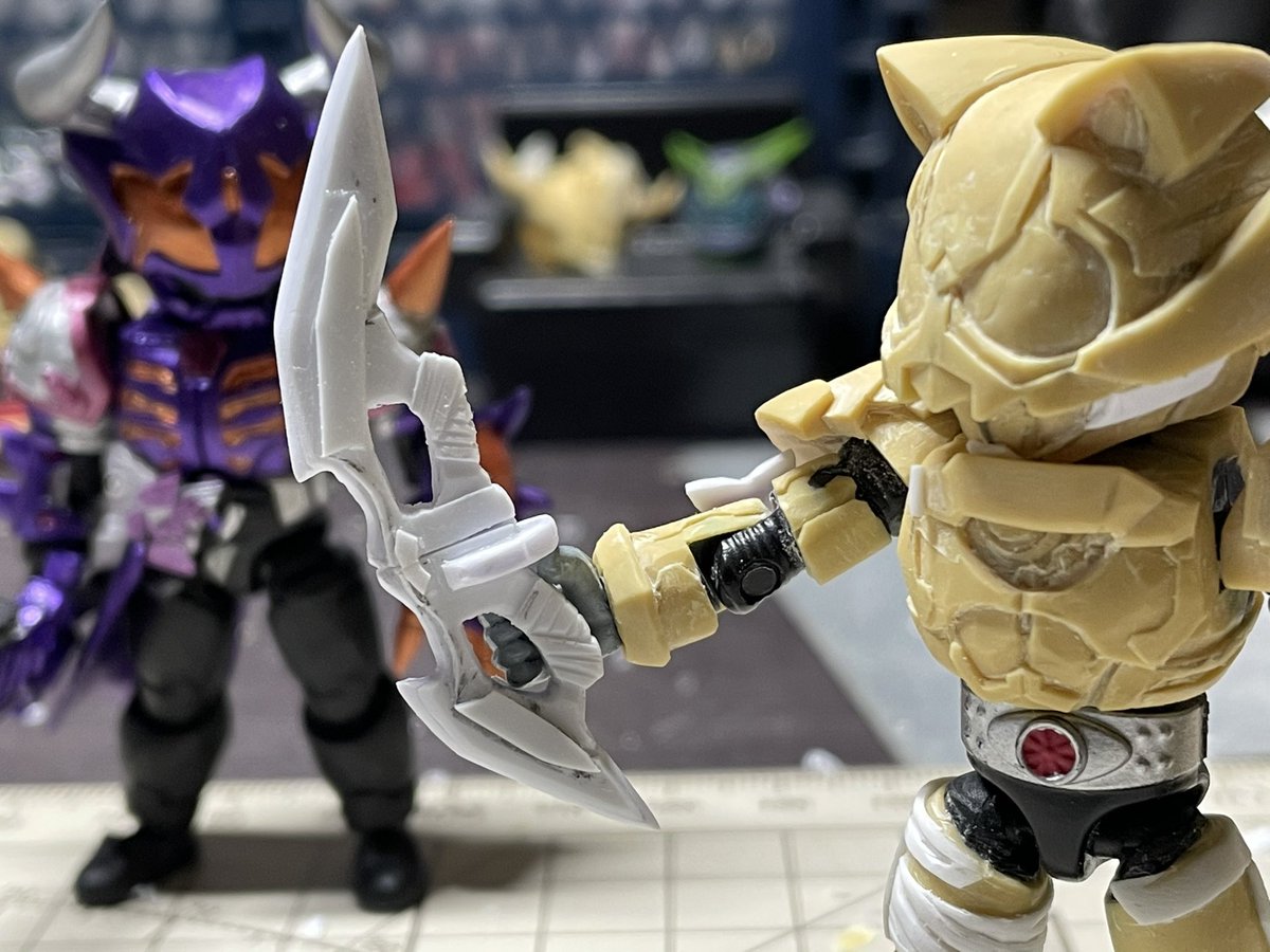 #66アクション改造部 66アクション改造 仮面ライダータイクーン ニンジャフォーム 完成しました 今回も中々というかかなり上手く出来たと思います、ニンジャデュアラーは分割可能です #仮面ライダーギーツ
