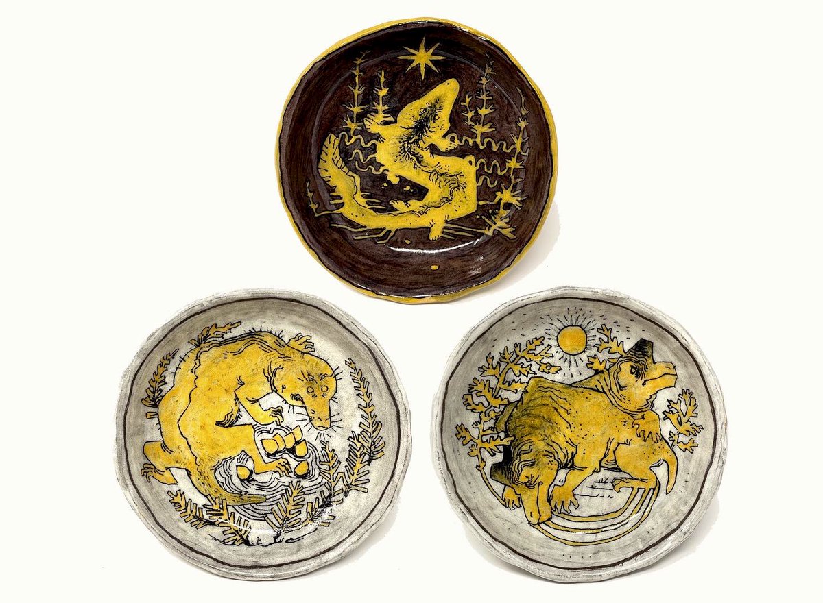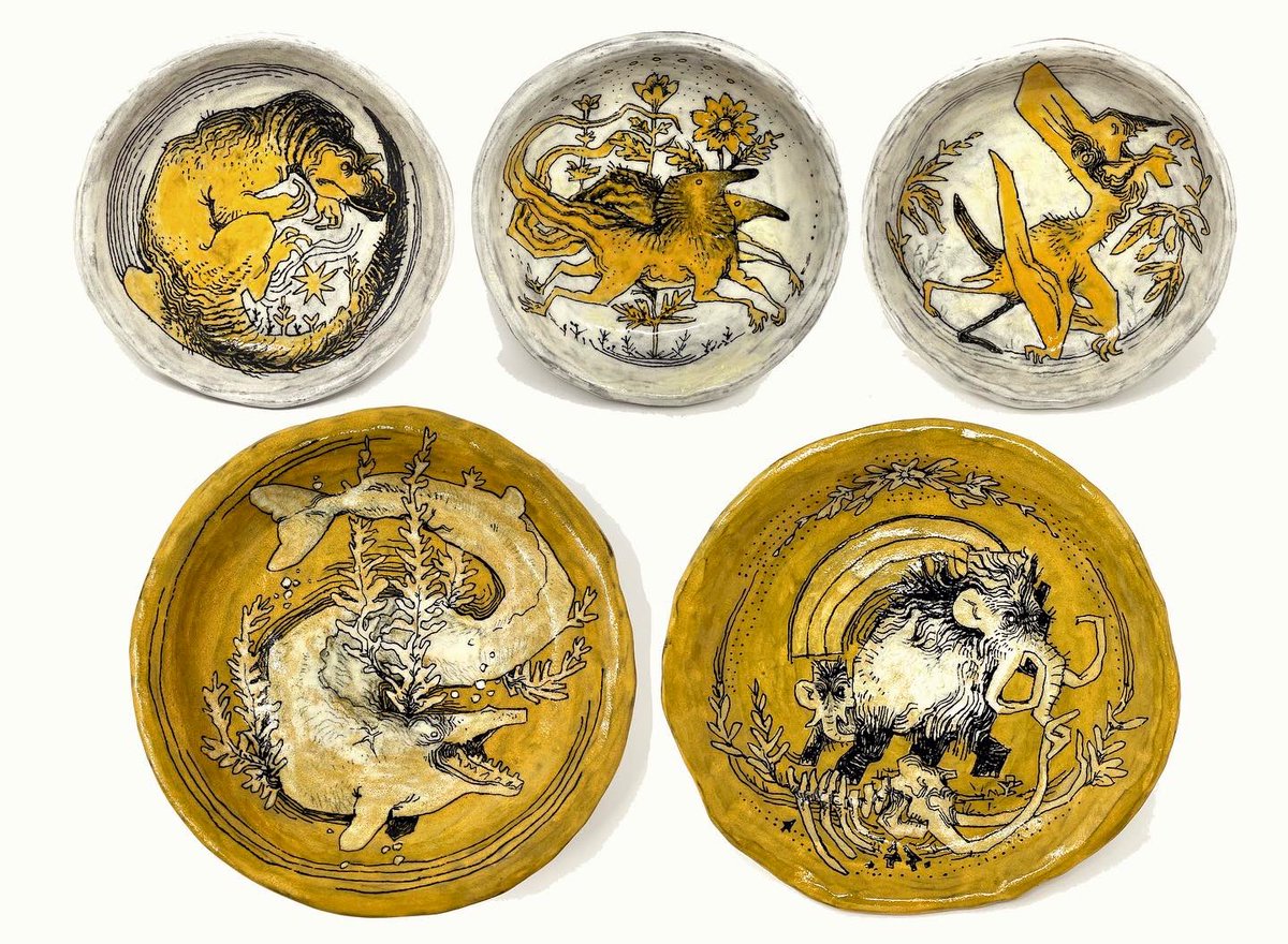 most prehistory dishes sold (thanks sm y’all!!) but lots of other work from my gloucester exhibition still available to view in person or buy online until june 7th! purchase link: gloucesterpotteryschool.com/dustevansgalle…
