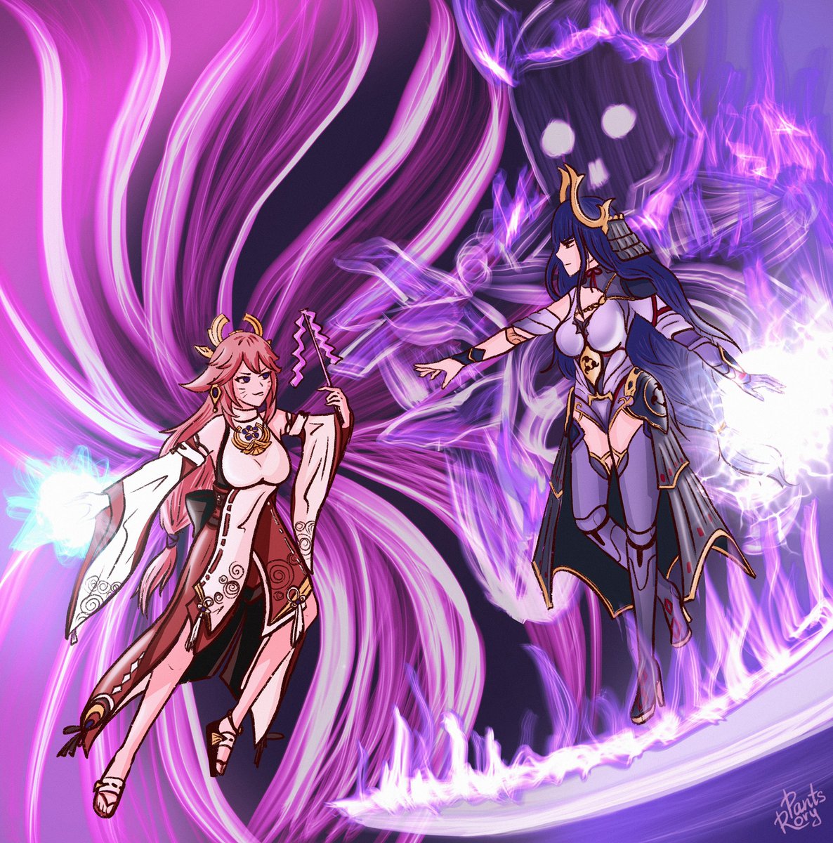 Мне кажется 2я сюжетка Райден должна была закончиться так) #GenshinImapct #genshinimpactfanart #NARUTO #crossover #RaidenShogun #yaemiko #ККГазета