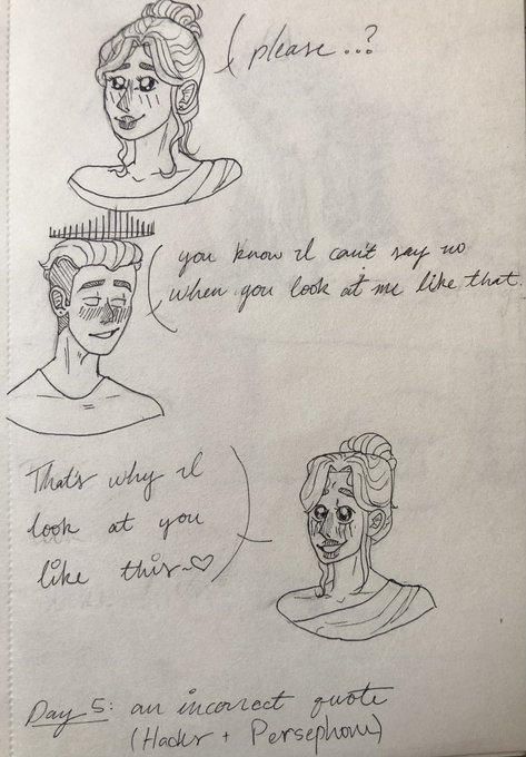 day 5: an incorrect quote Persephone: please? Hades: you know I can’t say no when you look at me like that. Persephone: that’s why I look at you like this. :) #ArtistOnTwitter #Godlytober #inktober2021