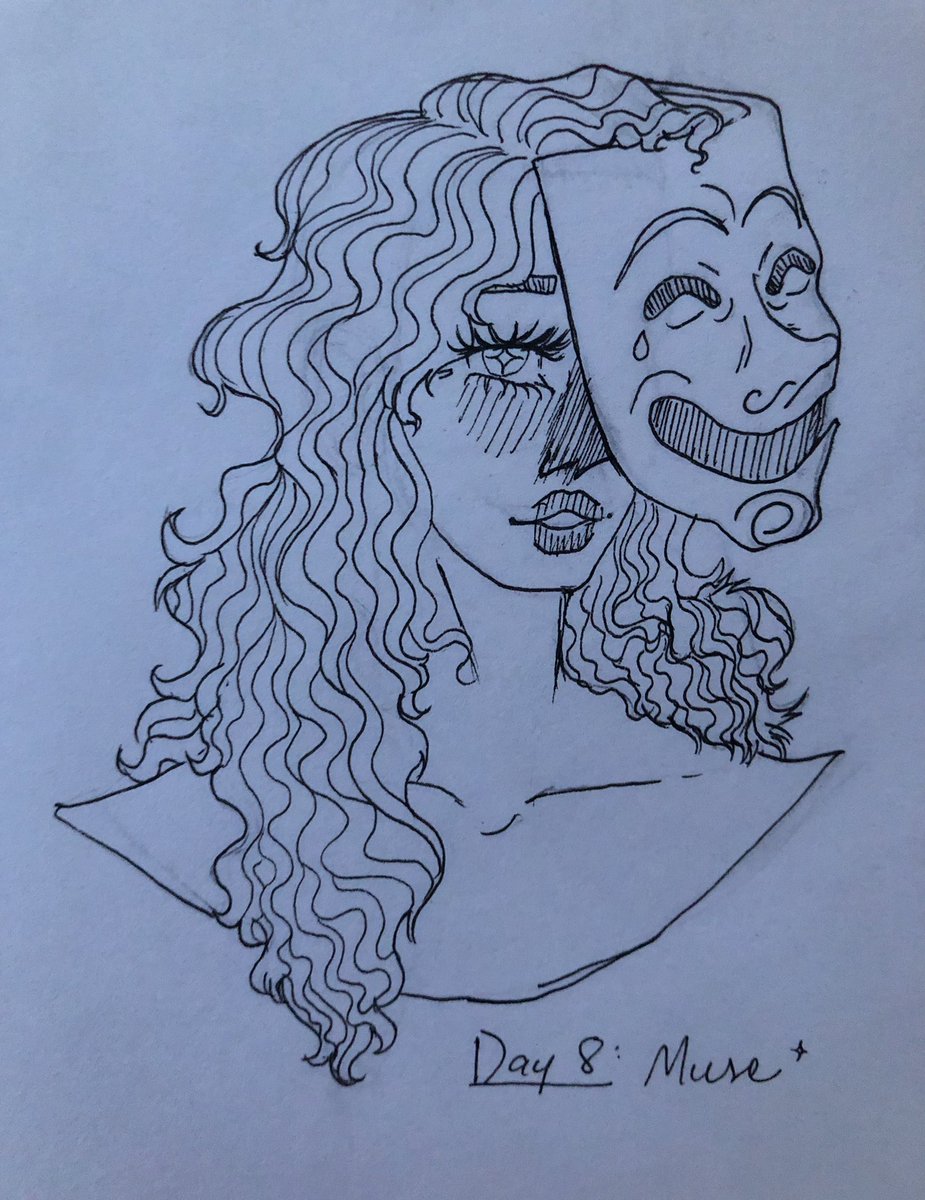 day 8: muse ✨ I drew Thalia, the muse of comedy :) #Inktober #arttwt #sketch #artwork #Artober2021 #Godlytober #IAmNonbinary