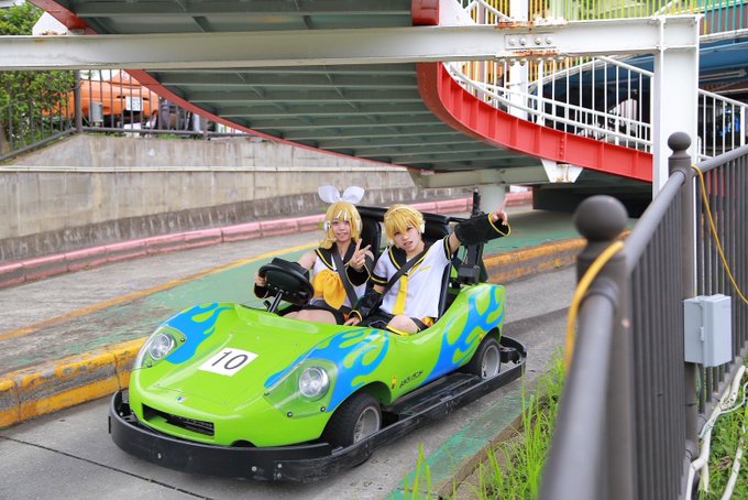 6 27 ☆*。鏡音リンレンCosplay🍊🍌 ☆*。 『リン〜!!次はこっち!!こっち!!』 『いえーい✌️』 🎡🚗💨💨 💨 ✩.*˚🤍💚🤍 #サーコス #Cosplay 23/06/12 21:04
