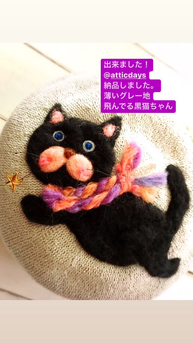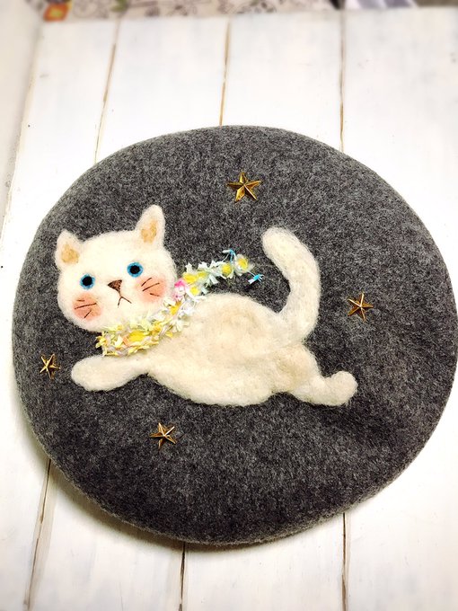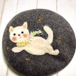 飛んでるニャンコのベレー帽、大阪市中崎西の @AtticDays 取扱い。 薄い薄いグレー色がベースです。57〜58センチ #羊毛氈 #羊毛フェルト #belet