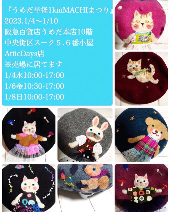 1 5 次のイベントは、 『うめだ半径1km MACHIまつり』8/16〜22 阪急百貨店うめだ本店 10階スーク中央街区 AtticDays店 #belet #羊毛フェルト #贝雷帽 23/07/16 22:50