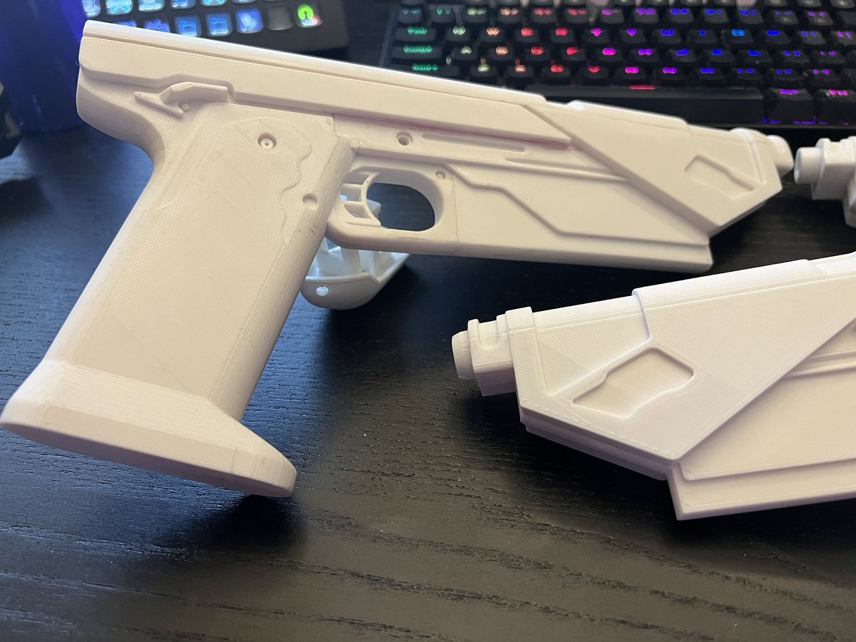 So this is first big endeavor into making a replica prop. Happy with the way it’s coming out. Waiting on wood filament to print grips. 😎 #3dprinter #StarWars #cosplay