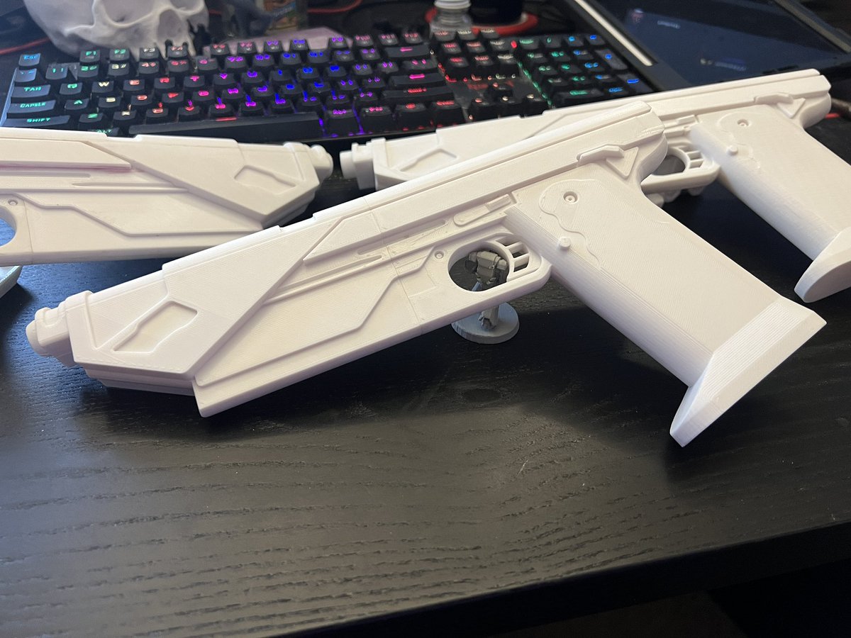 Ok I have 3 Westar blasters printed. 2 for daughter and 1 for my collection. Will be filing and sanding for paint and finish detailing over the next couple of weeks. Can’t wait to show them off when done. #StarWars #MandoMonday #3Dprinting #cosplay