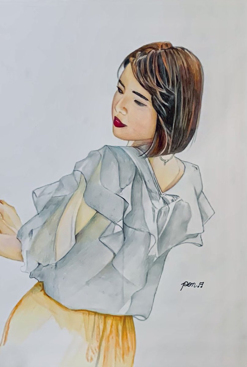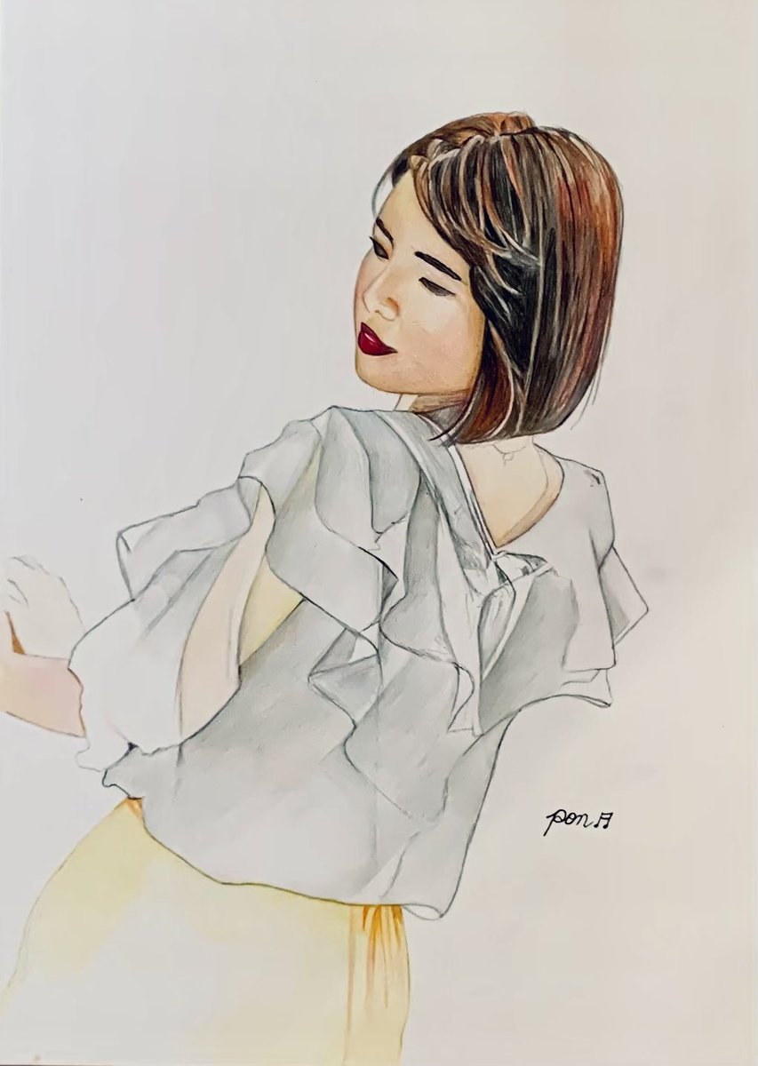 ദ്ദിᐢ- ̫-ᐢ₎とりあえず #大橋めりさ #色鉛筆画 #ポートレート