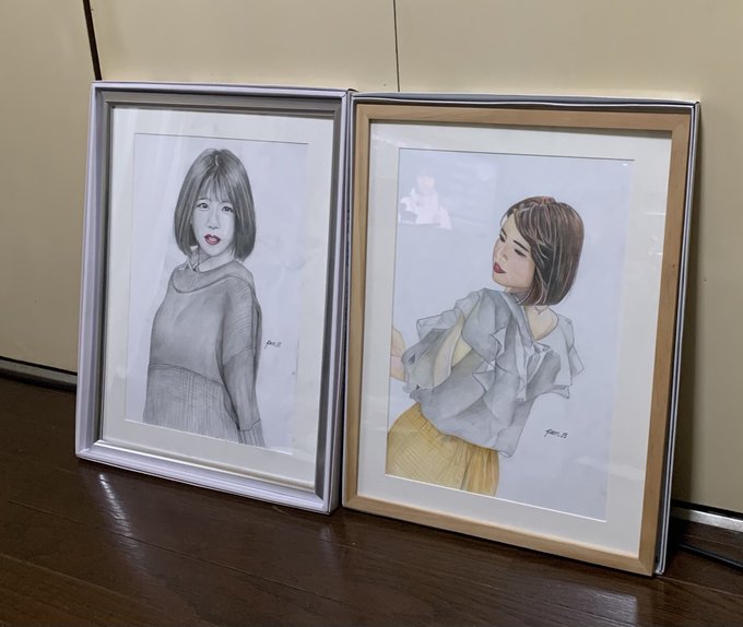 0 4 仕事帰り、画材屋さんに 寄れたので、やっと表装出来たฅ・ω・*) #月野鈴菜 #鈴菜ちゃん #色鉛筆画 #パッショーネ撮影会 #ニューウェーブ撮影会 #ポートレート 23/07/06 19:24