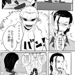 ネーム交換でへどろさん(@h59593451 )のドフ鰐ネームを描かせていただきました〜!!鰐が仕事漬けなの最高だし、それを気づいて誘いくるドフかっこいい…描いていてとても楽しかったです!素敵ネームありがとうございました!