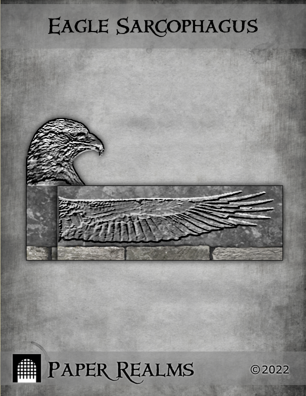#inktober2022 day 11 prompt is "eagle". I struggled with a number of ideas before this one came to mind. It's a sarcophagus of sorts, with an eagle motif. Got a dungeon with dead people? Let 'em rest in style! #inktober #papercraft #ttrpg #dungeonsanddragons