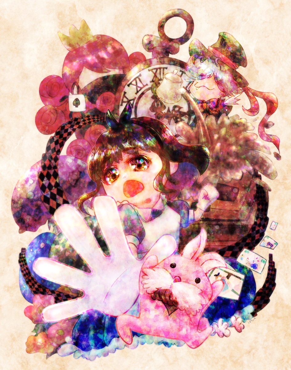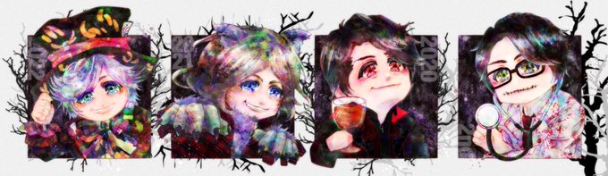 アリス真礼ちゃんと愉快なスタッフ陣withマッドハッター下野さん🐰♥️♠️🎩👼 今年もみんなで本気仮装ありがとうございました✨✨ #イラスト #ファンアート #下野内田と夜あそび #下野紘 #内田真礼 #ハロウィン #不思議の国のアリス