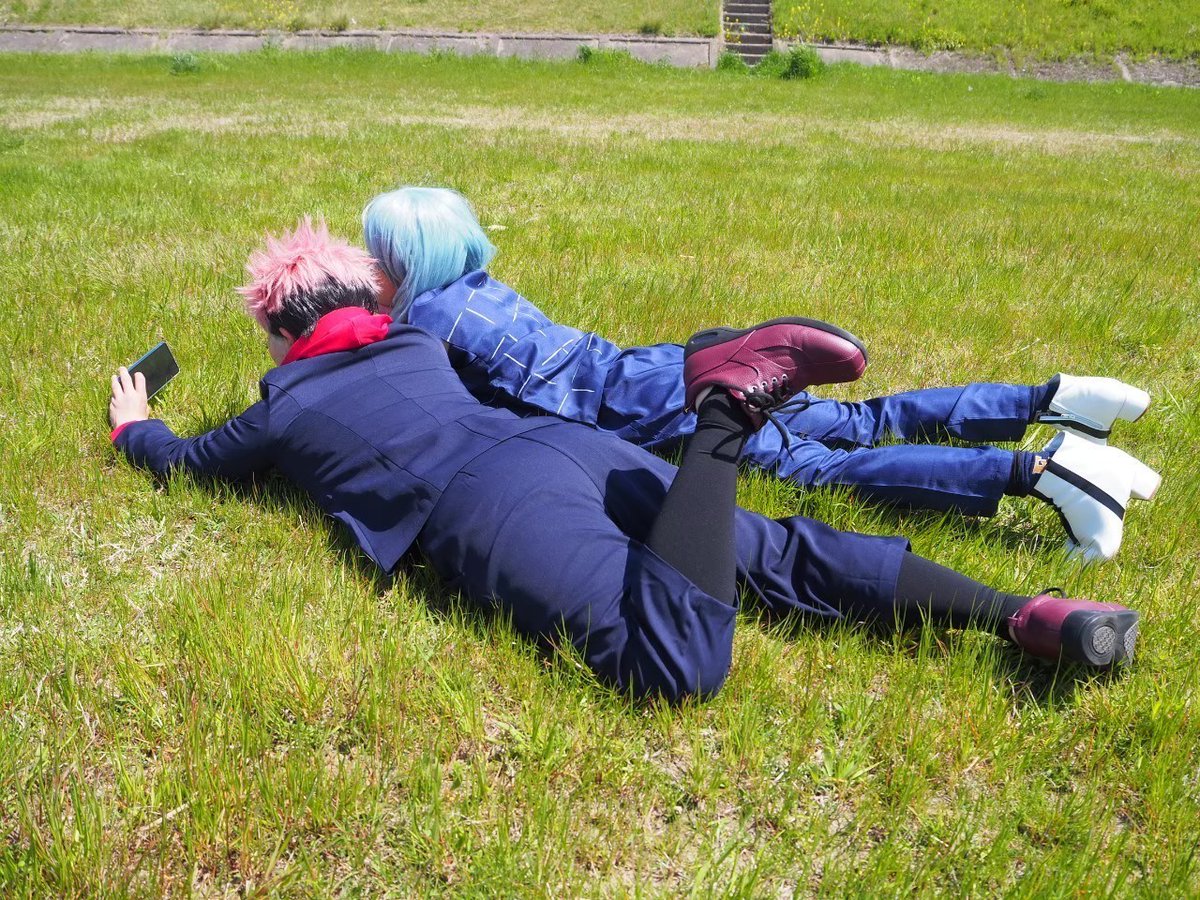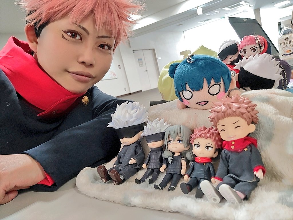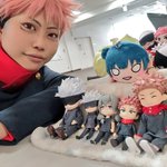 昨日の手柄山イベも楽しかった😆 呪術コスの方たくさんいてお写真も一緒に撮れたし幸せでした☺️ 五悠仲間できて嬉しかった🥰 一年とげくん早よ揃えねば!! チビ五と悠が増えたので大きい子達と一緒に連れて行きました✨ からすさん家のチビ真人くんも一緒に✨ #colorplayer #CP手柄山