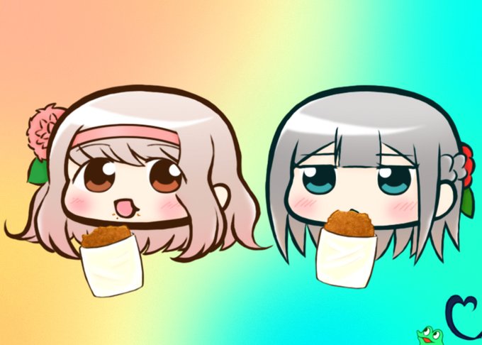 2 12 紫陽花ちゃんと椿ちゃん商店街のコロッケとか好きでしょうか(*´艸`*) とっても楽しく描かせていただきました(*´∀`*) #紫陽花ちゃん絵描き歌 #椿ちゃん絵描き歌 20/05/14 05:46