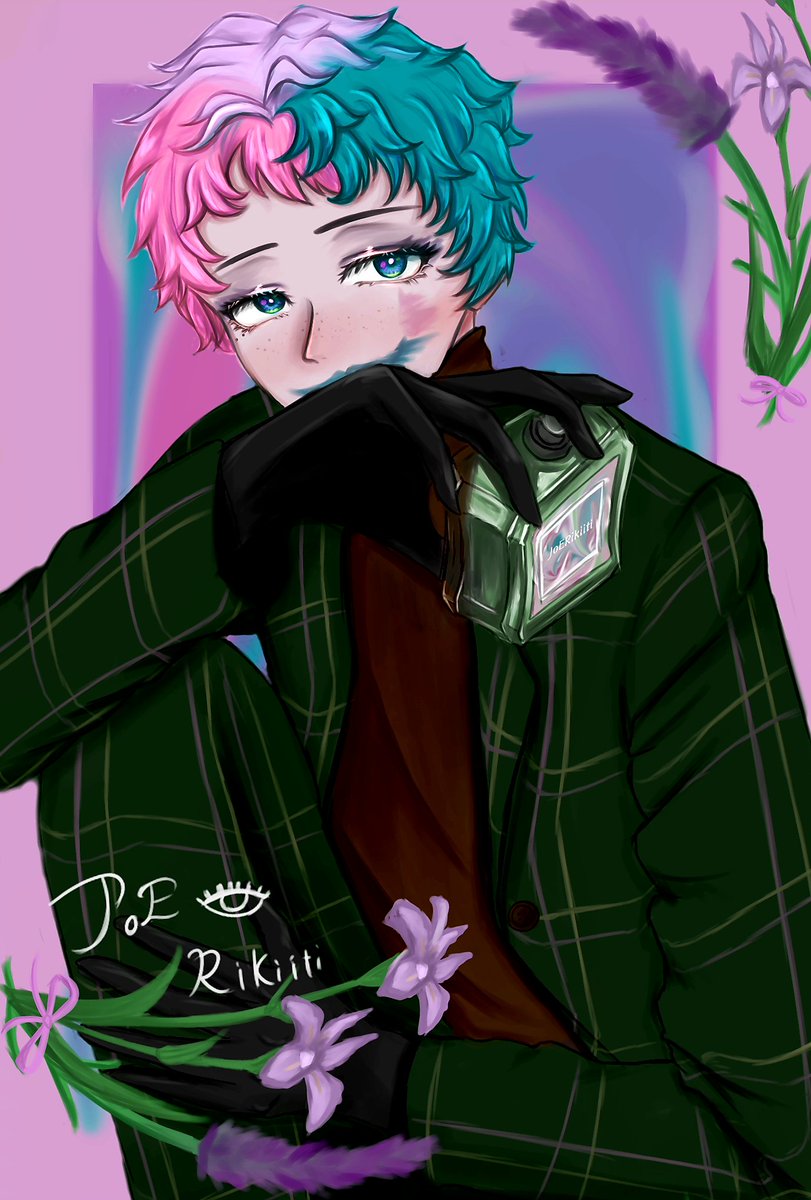 香水衣装良い〜!!! 香水瓶死ぬほど細かく書いてるので見てもろて… でもお顔も見てもろて… #ジョー設展