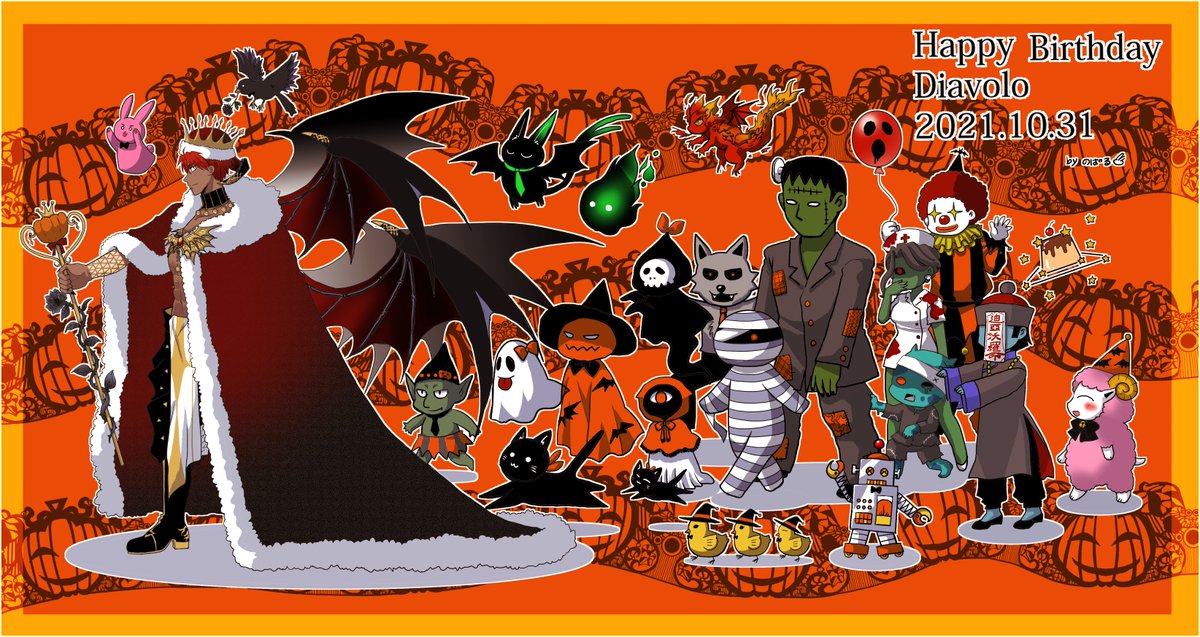 仲間を増やしていくディアボロ殿下(最終夜) ディアボロ生誕祭ハロウィン百魔夜行 お誕生日おめでとうございます これからも貴方がたくさん幸せになりますように #Happybirthdaydiavolo #obeymediavolo #obeymefanart