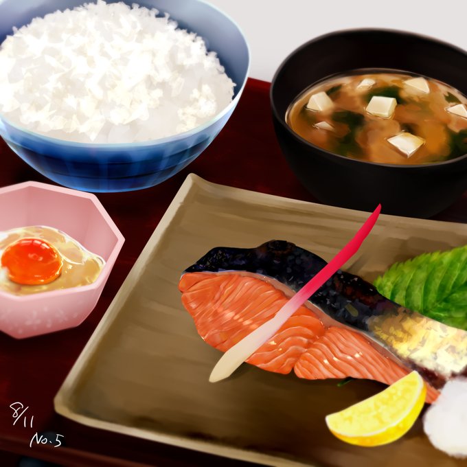 💜No.5 鮭定食💜 100日チャレンジ食べ物編5日目 シャケってうまいよね🐟 お椀に盛った白米とお味噌汁のリクをマシュマロで頂いていたのでお魚もプラスしました👀 配信で見守ってくださった皆様ありがとうございます🙌✨ #佐藤完璧 #100日チャレンジ #佐藤の100日おえかき