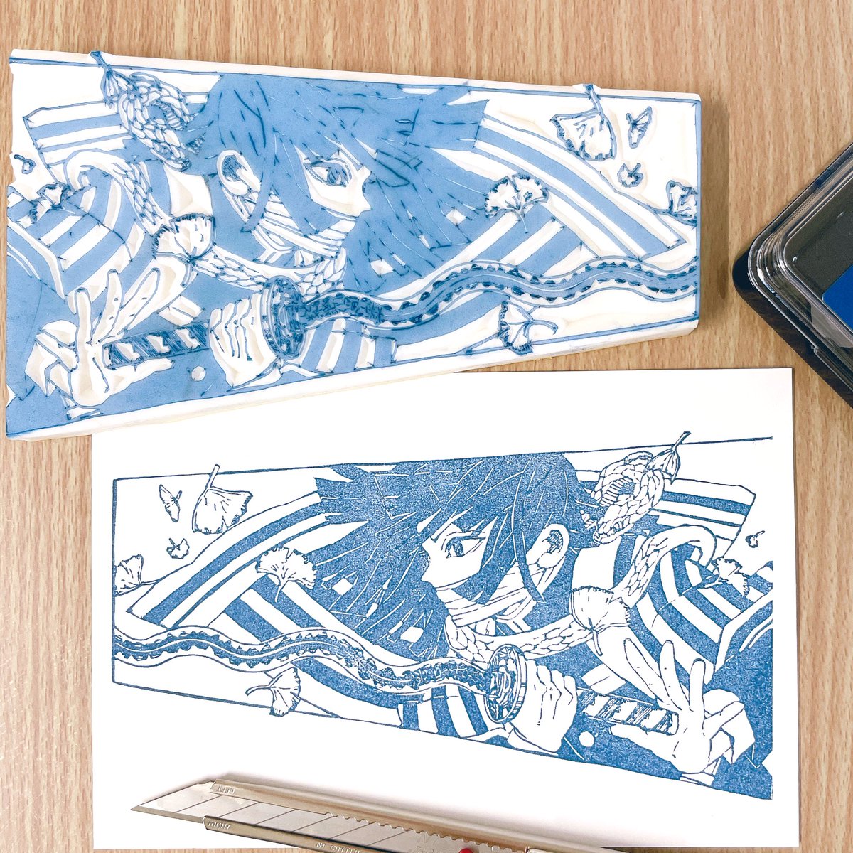 #今月描いた絵を晒そう #今月作ったものを晒そう #消しゴムはんこ 後半パズルばっかりやってたけど、意外と彫ったり描いたりしてた😂笑